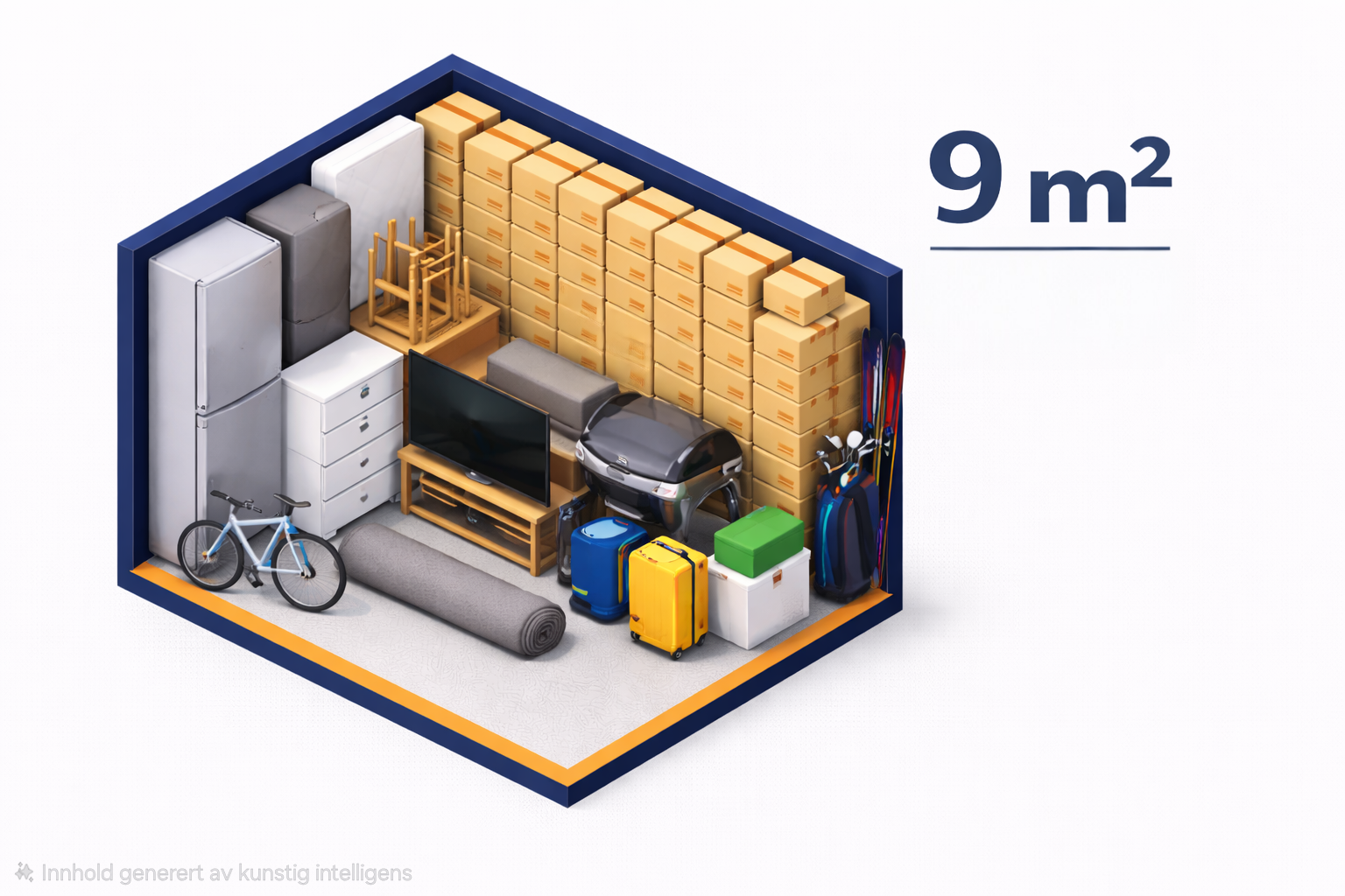 9m2 og 24m3 i volum - passer for deg med litt lagringsbehov- for eks en 2 roms leilighet på 40-70 kvadratmeter